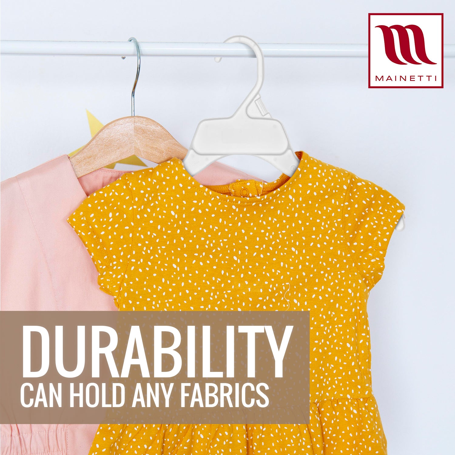 We are Mainetti. The most diverse full-service supplier of retail solutions. We are an innovator in garment hangers for famous names in retail and apparel. We pride ourselves in product sustainability and innovation across the global supply chain - from hangers to polybags, packaging labels, and RFID technology.