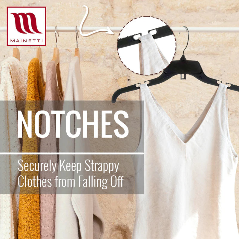 We are Mainetti. The most diverse full-service supplier of retail solutions. We are an innovator in garment hangers for famous names in retail and apparel. We pride ourselves in product sustainability and innovation across the global supply chain - from hangers to polybags, packaging labels, and RFID technology.